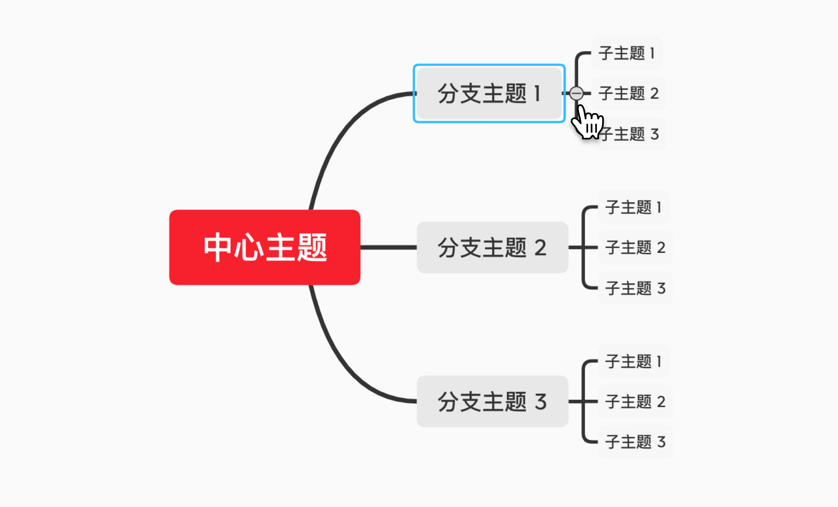 当不想对Xmind导图全局内容进行折叠和查看的操作时,而只是想在某个主题下进行折叠/展开的操作时,可以用这个功能。