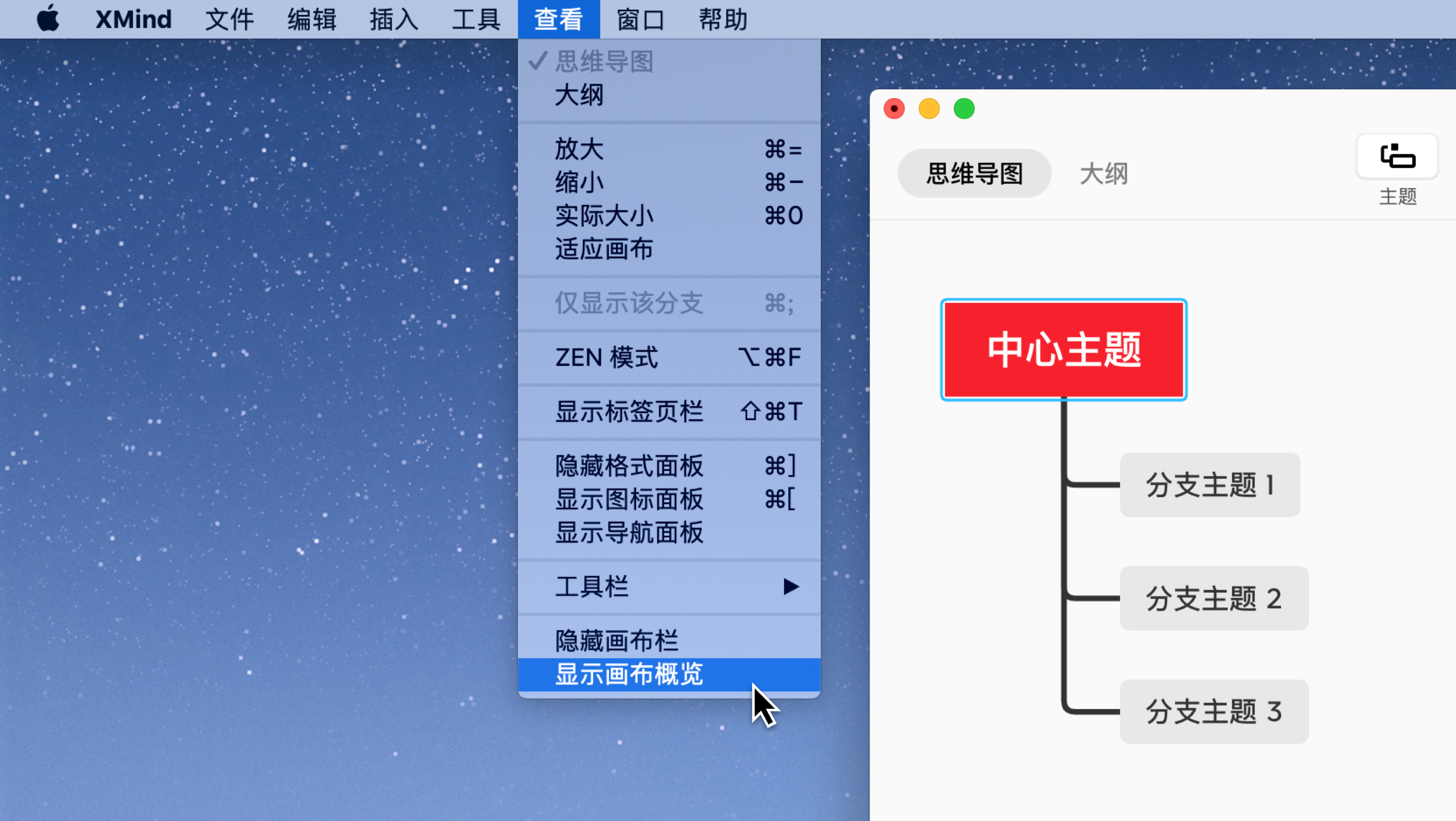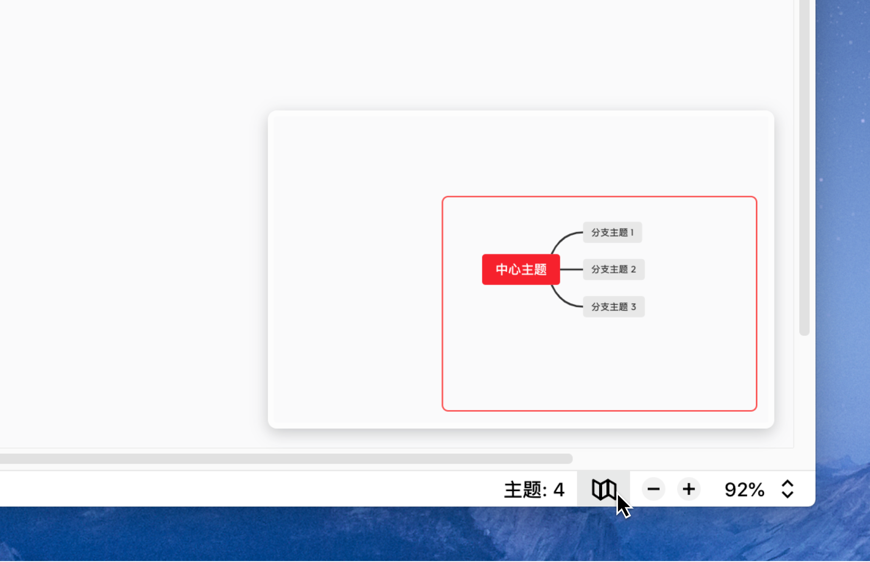 画布概览呈现了思维导图的全貌,可以用来快速定位某个主题在整张导图中所处的位置。