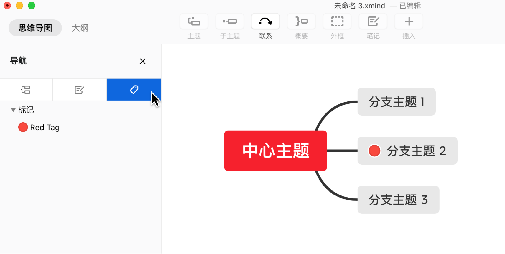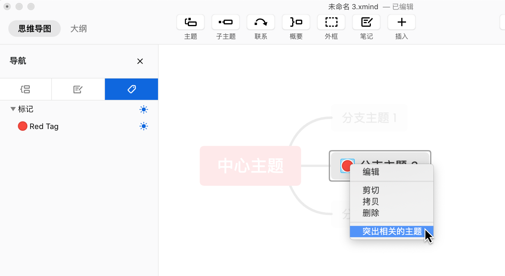 (1)鼠标移至标记&标签,右键选择突出相关的主题唤出主题过滤功能;