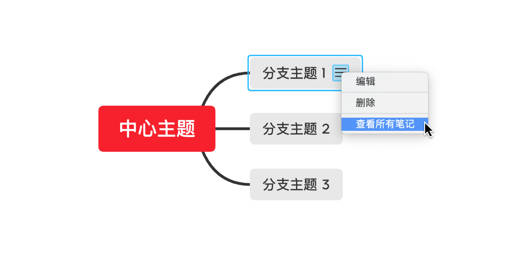 笔记视图功能快速查看和搜索所有笔记,以往散落在导图各角落需一一点开查看的笔记现在同一个界面中即可查看;在笔记视图中点击概览即可直达该笔记所在主题。此外还支持用关键词搜索笔记内容,信息的查找变得更加便捷。