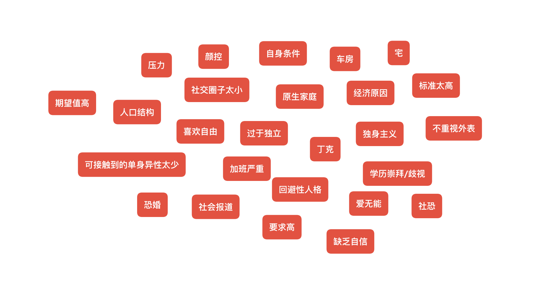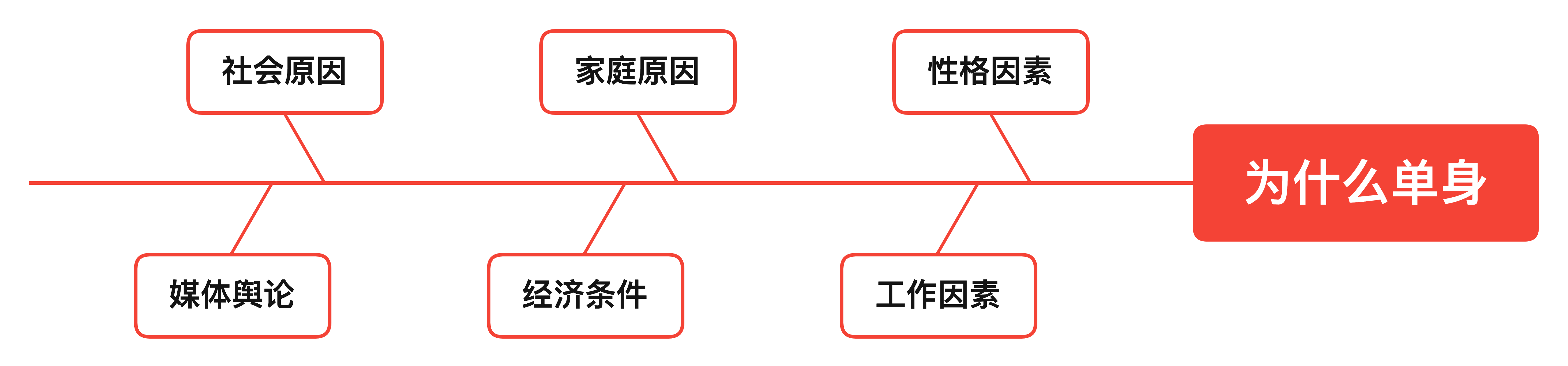 以困扰当代年轻人的一大婚恋难题为例,和大家一起来绘制一个简单的Xmind因果分析图。