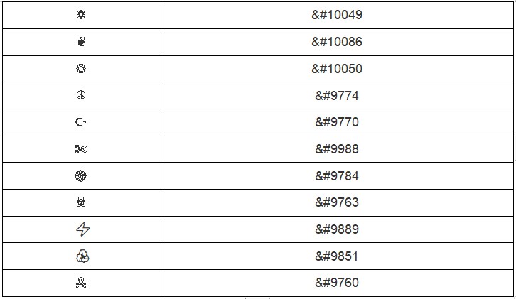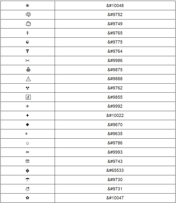 在HTML中添加特殊字符示例代码: