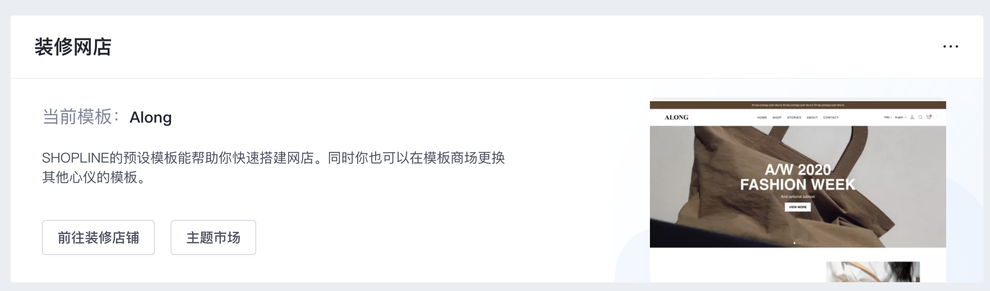 除了基础任务外,最重要的就是装修网店。SHOPLINE的预设模板能帮助你快速搭建网站,同时你也可以在模板商场更换。