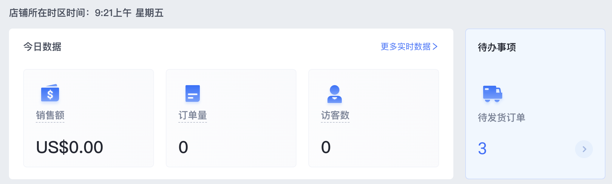 - 这里的今日指:店铺当前设置时区的0点到现在。(可以在设置-基础设置,对店铺的时区进行修改)