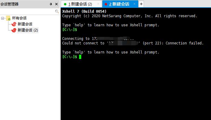 所有的会话都会保留在“会话管理器”中,无论连接成功与否。当会话成功连接后,窗口左侧将显示绿色的圆点,反之则显示红色圆点。如下图: