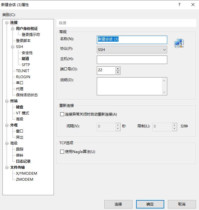 如果我们想要创建一个新的服务器连接,那么就需要创建一个新的会话。点击菜单:“文件”—“新建”,打开会话新建窗口,具体窗口视图见图2。
