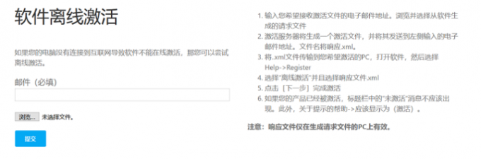 如果你的电脑因为没有连接互联网从而导致软件不能在线激活,那也可以尝试申请离线激活。申请成功后,按照右侧步骤进行即可激活产品。