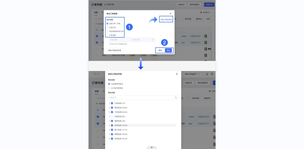 同时,可以自定义导出字段,选择报表所需要包含的字段,并选择“以店铺币种”或是“以订单币种”导出报表。