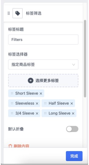 标签筛选是通过商品标签来实现,买家可以单选或者多选标签,来精准的找到对应商品。但需要提前为特定商品打上标签,如跟属性、季节、款式相关的标签。