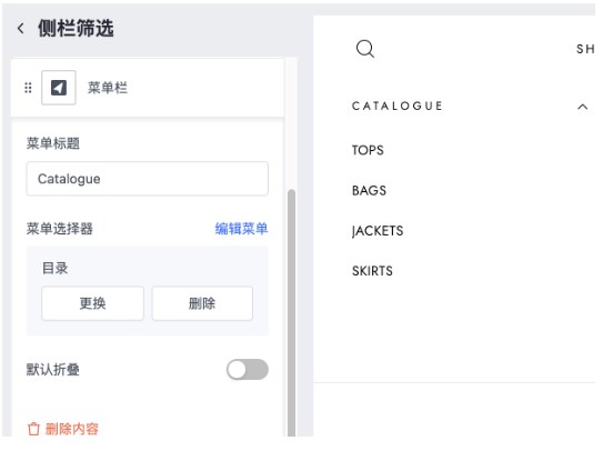 模板编辑器>选择页面>商品列表页>侧栏筛选