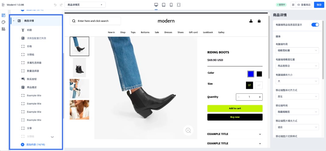 只有 OS 2.0 及以上版本的主题模板支持设计【商品详情】组件。