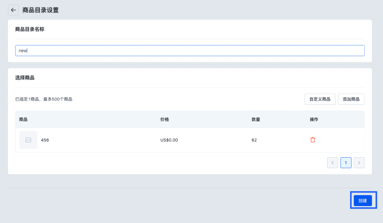 (5)点击【创建】,完成商品目录创建。