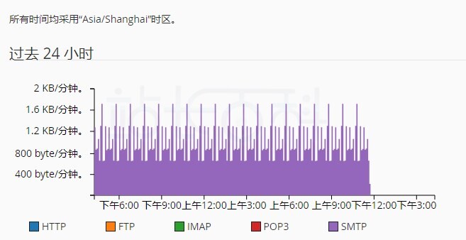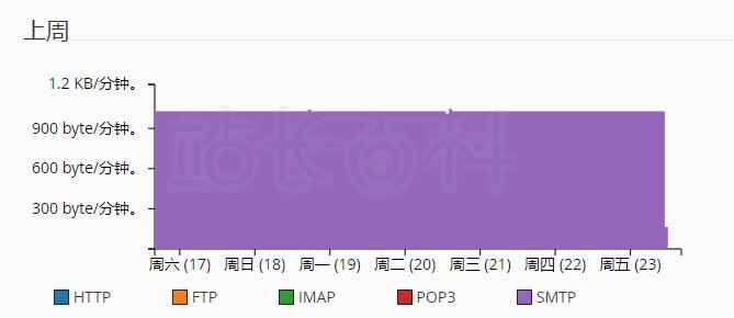 - 系统只记录 SMTP(发送)信息的带宽;系统在计算带宽时不包括 POP3 或 IMAP(接收)信息。