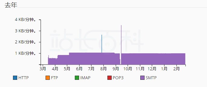 过去一年图表显示系统在 12 个月(一年)内传输的数据总量。