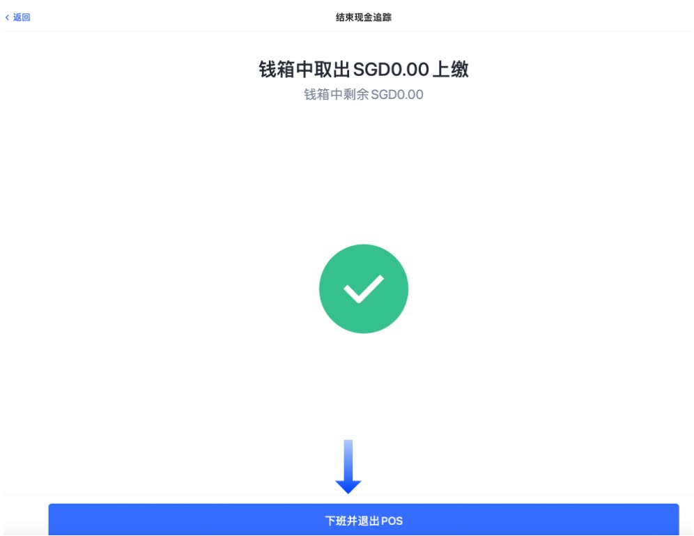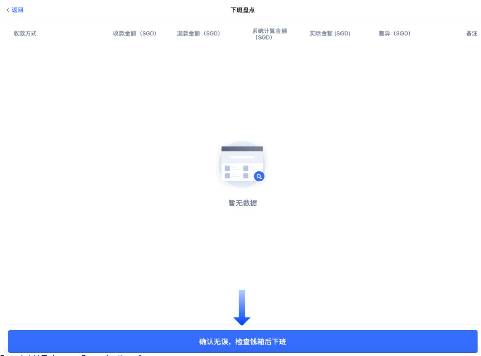 (2)下班盘点,并点击【确认无误,检查钱箱后下班】。
