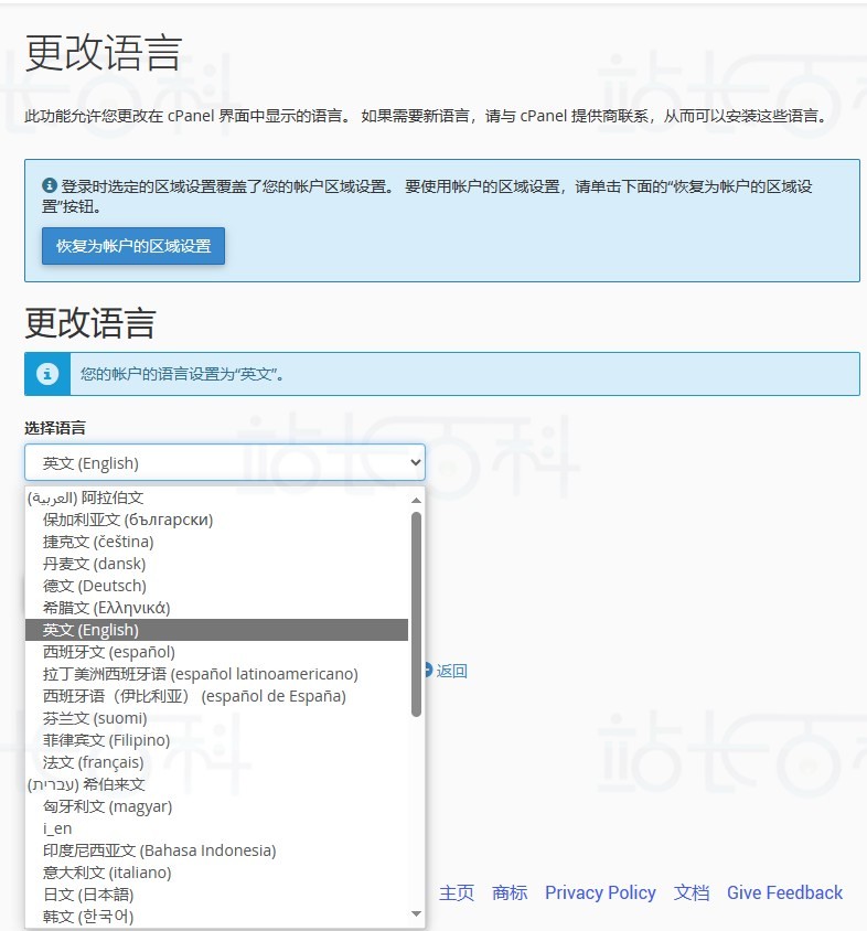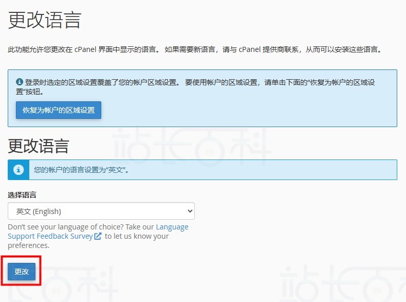 要更改 cPanel 界面的语言,请执行以下步骤: