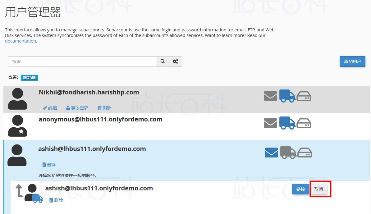 通过cPanel面板用户管理器,管理员可以轻松地创建、管理和监控子账户,确保每个用户获得所需的资源同时保持整体系统的安全和稳定。子账户可以访问电子邮件、FTP以及Web磁盘等服务,而这些服务使用的是同一套登录凭证,大大简化了管理流程。