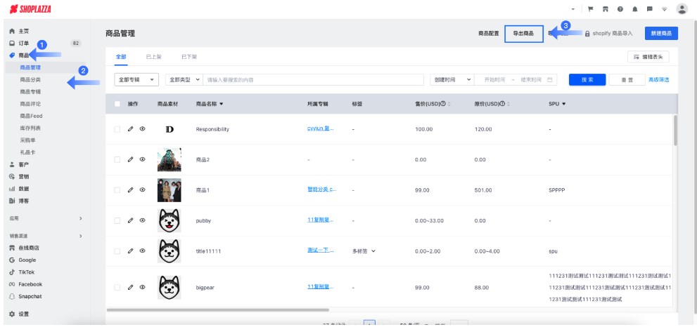 1、在店匠店铺后台,点击【商品】>【商品管理】>【导出商品】,下载商品表格文件。