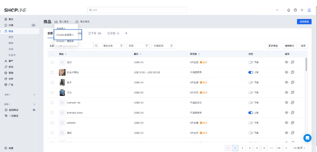 在SHOPLINE中添加商品,包括销售的货物、数字下载内容、服务和礼品卡。如果商品具有尺寸、颜色等规格,还可以为每个规格添加相应的规格值,从而创建多款式商品。本教程主要介绍SHOPLINE商品功能、导入商品、错误处理等相关步骤。