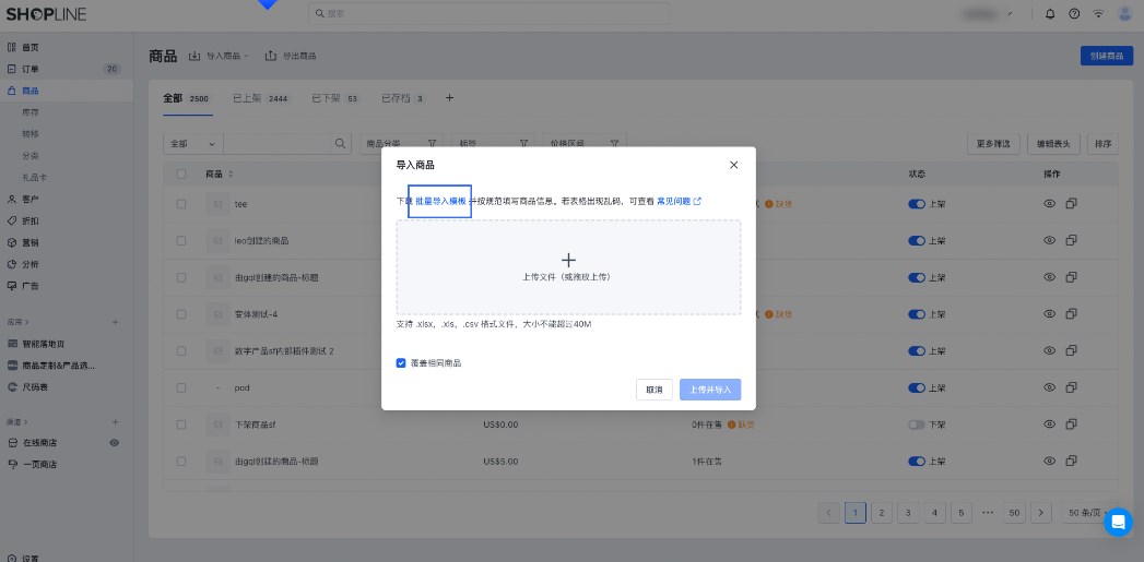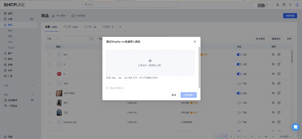 SHOPLINE 目前可以支持通过导出店匠商品表格来直接上传至 SHOPLINE 店铺,提高搬迁效率,减少人工搬迁带来的错误率以及时间成本。店匠商品导入 SHOPLINE 后台可参考以下操作步骤: