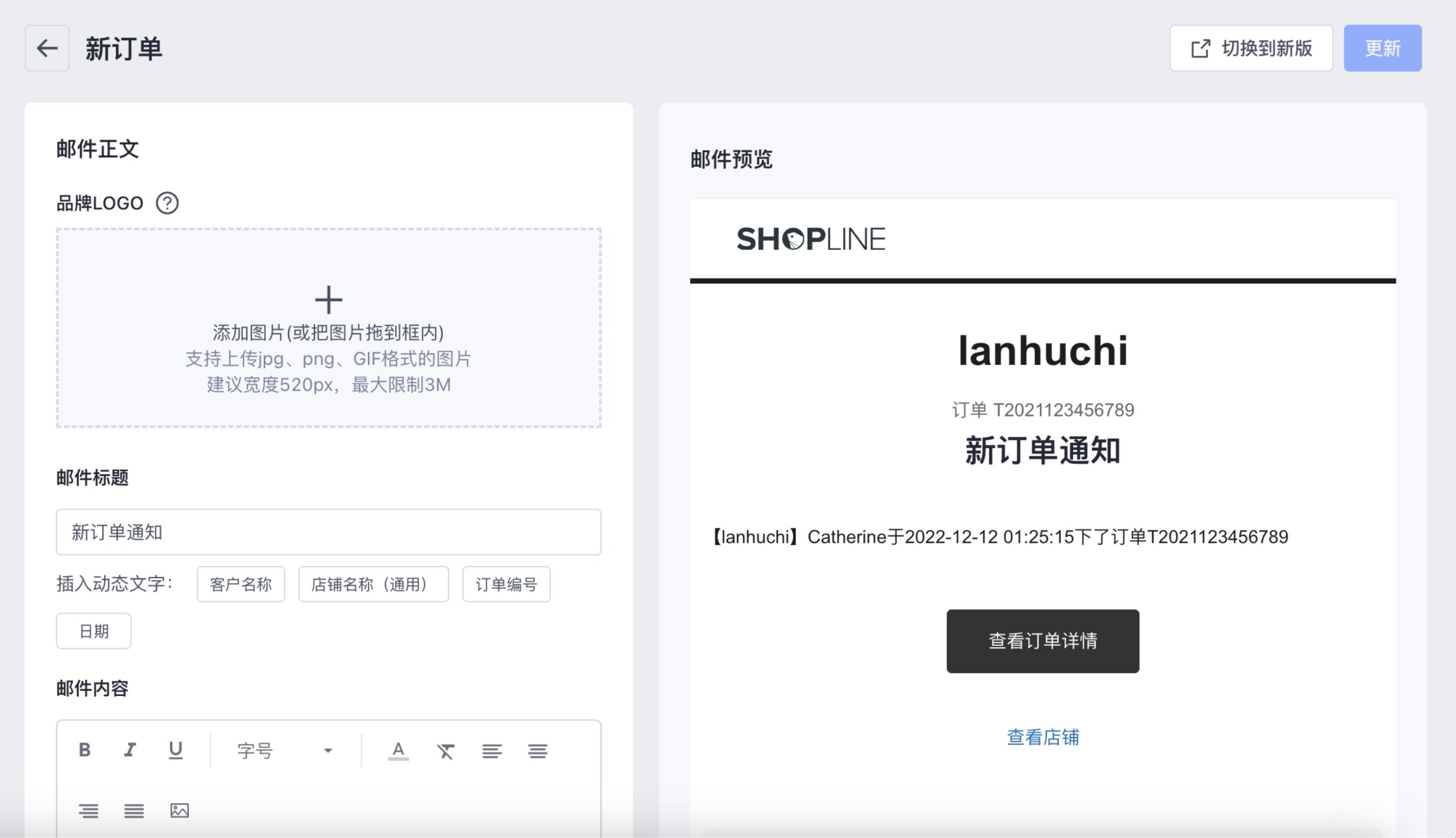 当店铺有新的订单产生时,SHOPLINE 将通过邮件的形式通知。
