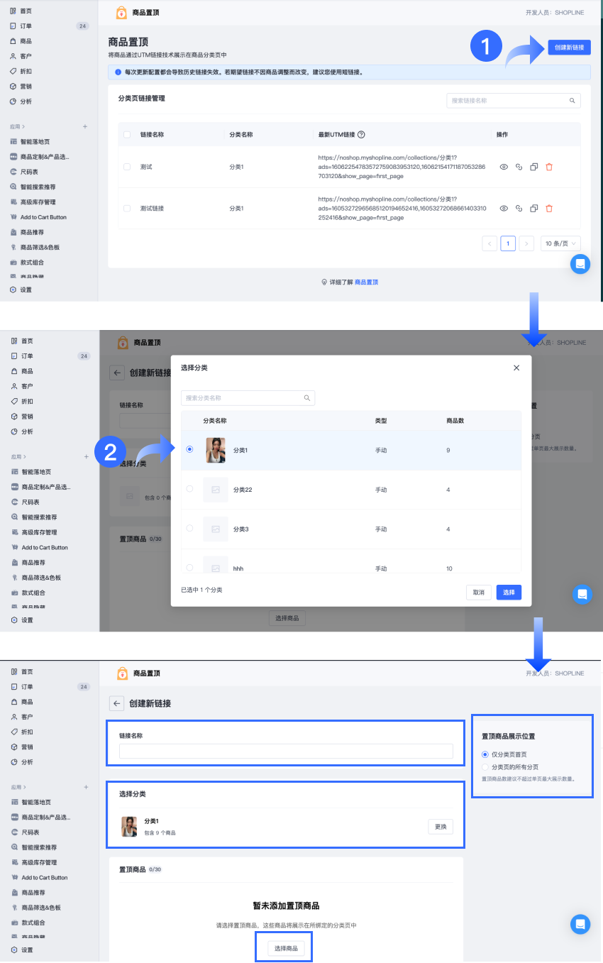 SHOPLINE的商品置顶功能允许商家将商品置顶在特定分类中,可以创建置顶链接,并将其分享至其他平台进行投放测试,以帮助加快发现畅销商品的规律,从而提高商店的销售额。本教程主要介绍SHOPLINE如何安装并使用【商品置顶】功能,并列出创建和管理置顶链接的相关操作。