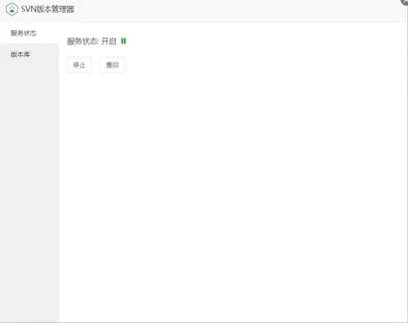 安装完成后,进入左侧导航栏的「SVN版本管理器」,查看SVN服务的运行状态。