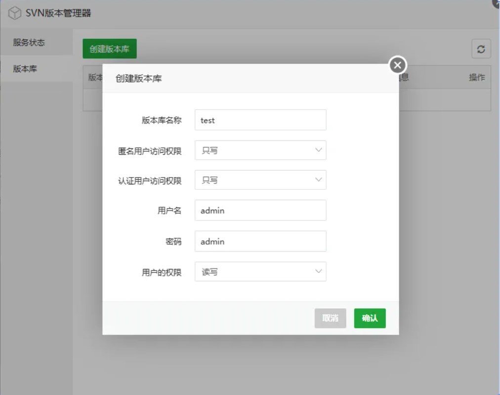 - 填写版本库的名称、描述等信息,然后点击「确定」完成创建。