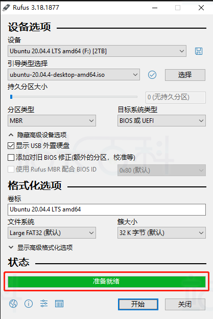 参考网站:Create a bootable USB stick with Rufus on Windows | Ubuntu