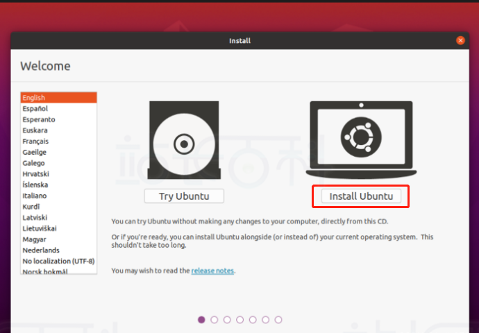 3、检查完后,会进入到Welcome界面,点击【Install Ubuntu】。