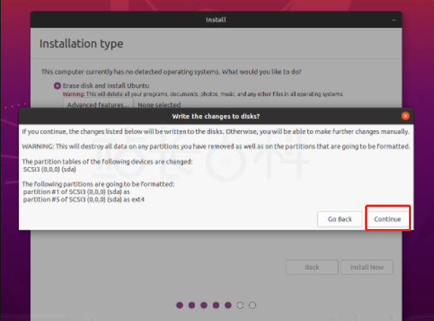 6、选择【Erase disk and install Ubuntu】,点击【Install Now】。