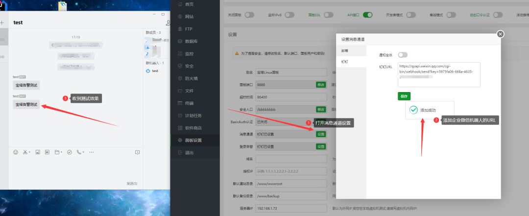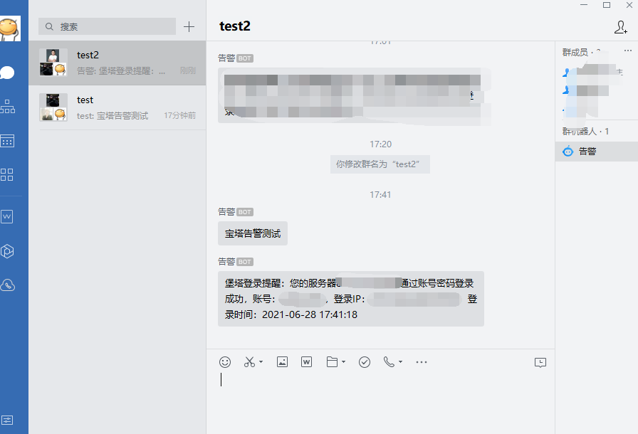 - 测试登录告警:退出重新登录,后企业微信就收到信息了。