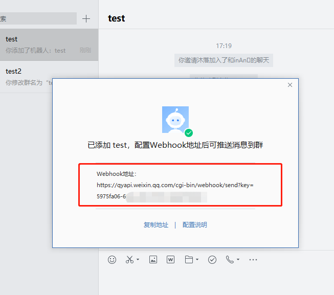 添加完成之后,会有一个url 复制到面板中。