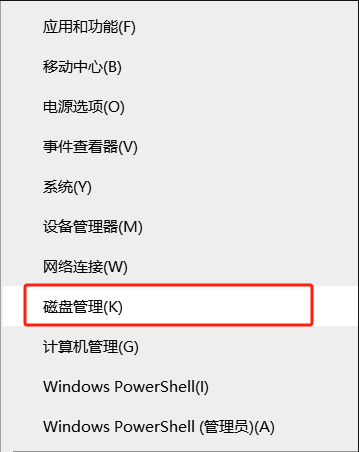 成功制作U盘启动盘后,我们需要为即将安装的Linux系统分配电脑内存。右键点击Windows徽标键,选择磁盘管理。