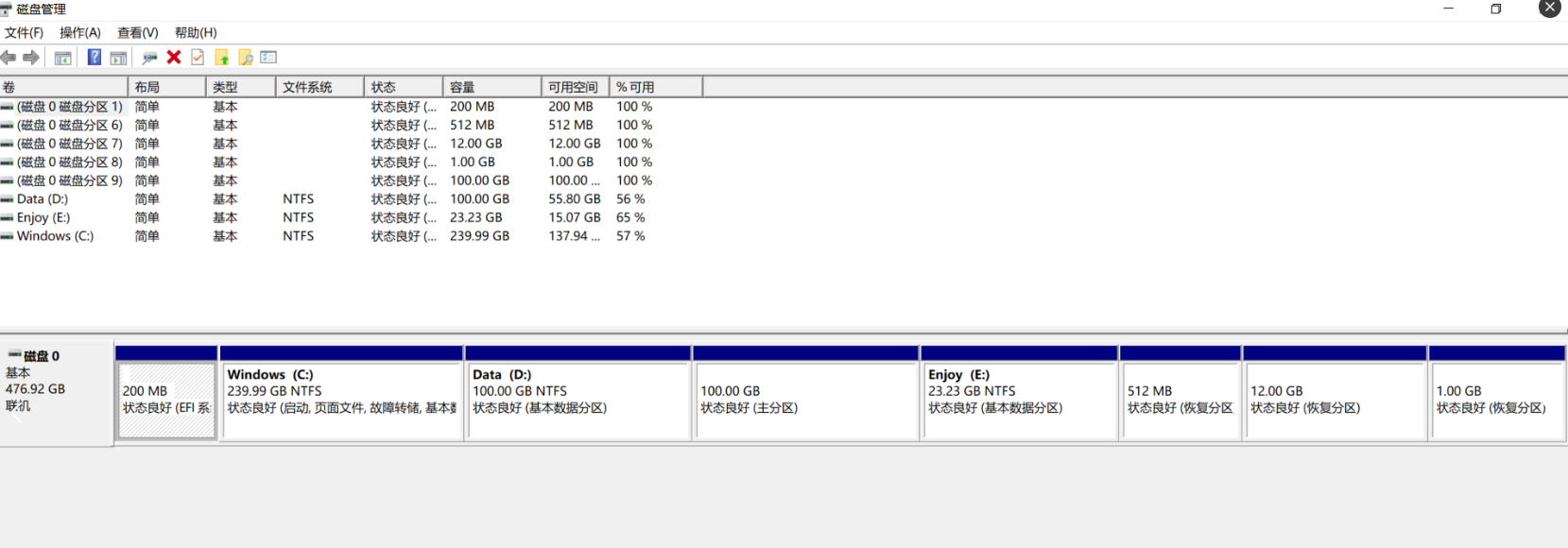 点击压缩后,我们将在压缩出的硬盘空间中安装Ubuntu 20.04系统。