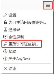 1、启动AnyDesk客户端,然后点击客户端右上角的设置按钮,选择“更改许可证密钥…”。