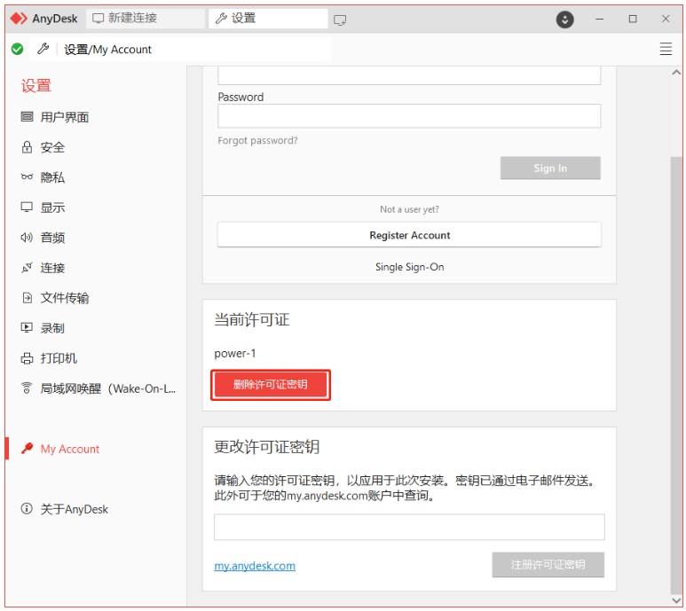 如果使用的是my.anydesk II,也可以通过以下步骤从许可证中删除设备: