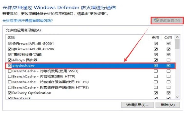 激活 “更改设置 “后,可以对AnyDesk的打勾,如屏幕截图所示: