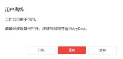 当尝试连接到一个离线的客户端时,如果一切设置正确,AnyDesk会提示“开启”休眠设备。按下“开机”按钮后,如果在同一网络上有其他在线的AnyDesk客户端,AnyDesk服务器会指示这些客户端发送唤醒信号到目标设备。一旦设备被成功唤醒,AnyDesk会自动与之建立连接。