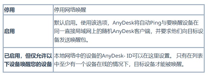 2、目标设备上的AnyDesk设置中已启用网络唤醒功能。