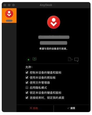 当向 AnyDesk 客户端发出连接请求时,将显示接受窗口。想要禁止提示,需要前往 “设置” > “安全” > “交互连接”,取消 “始终允许”。