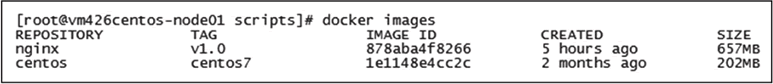 在脚本执行结束后,当尾行出现”Successfully tagged nginx:v1.0″时表示 Dokcer 镜像已经构建成功,可以通过 Docker 命令 docker images 查看镜像是否已经存在于本地的镜像仓库中,查询结果如下图所示: