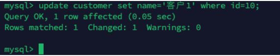执行以上语句后,会发现 “id” 为 10 的记录的 “name” 字段已被更新为“客户1”。