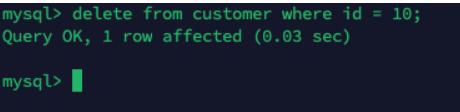 执行以上语句后,”customer” 表中将不再包含 “id” 为 10 的记录。