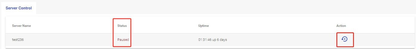 如果服务器状态为“关闭”,请点击操作列中的按钮以启动或恢复服务器。通常,服务器将在2-3分钟内启动。