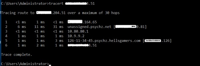 使用命令“tracert IP”检查从本地PC到服务器的连接延迟。Tracert命令是检测网络丢包和延迟的有效工具。