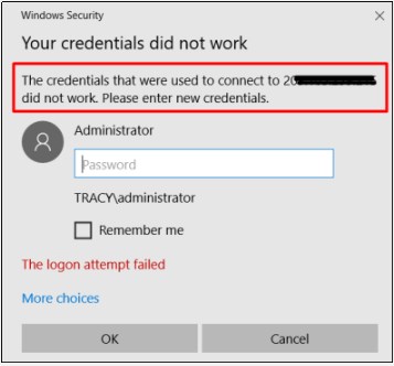 如果在Windows RDP上遇到“凭据无效”错误,或在Linux服务器上收到“访问被拒绝”错误,请检查输入的密码是否正确。确保密码中没有额外的空格。Windows服务器和Ubuntu服务器的默认用户名为“administrator”,而CentOS服务器的用户名通常为“root”。