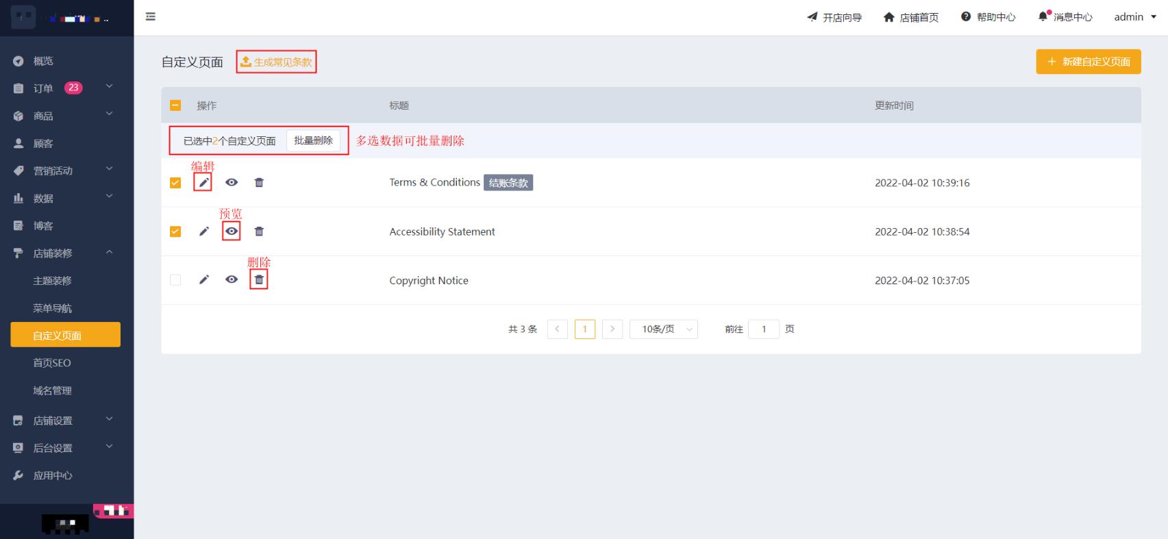 六、管理自定义页面