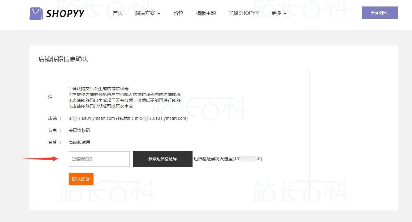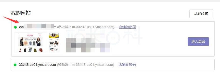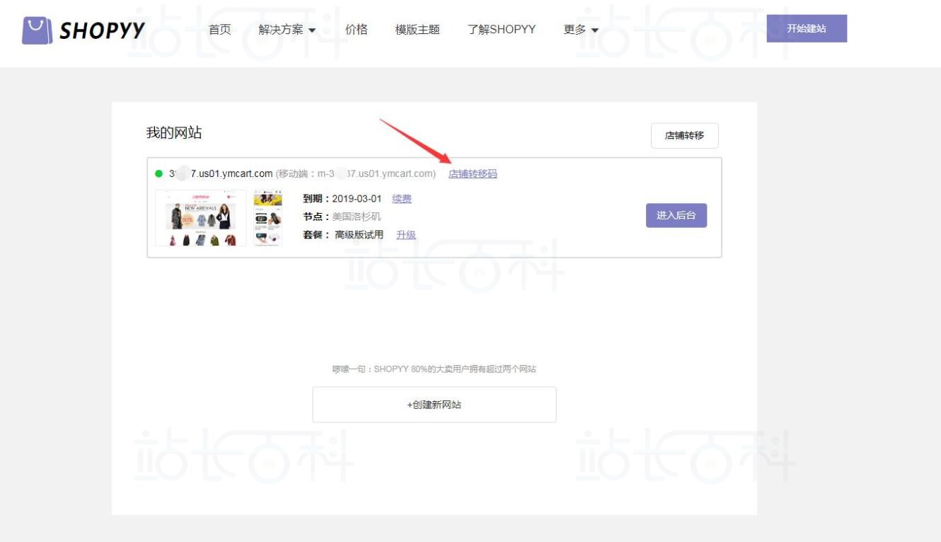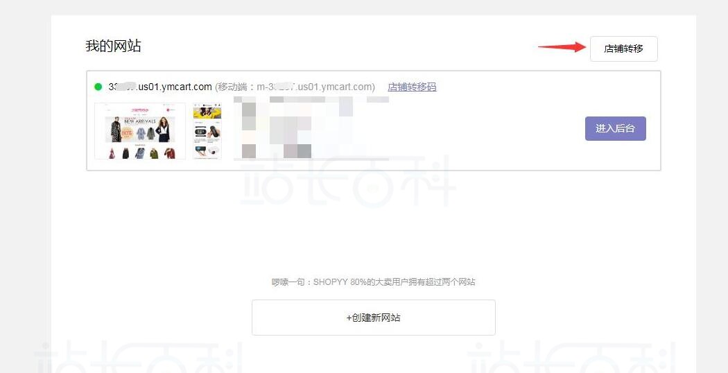 完成上述操作后,可以进入“我的网站”页面查看转移过来的店铺信息。此时Shopyy店铺已经成功转移到新会员账号下,并出现在新会员的店铺列表中。