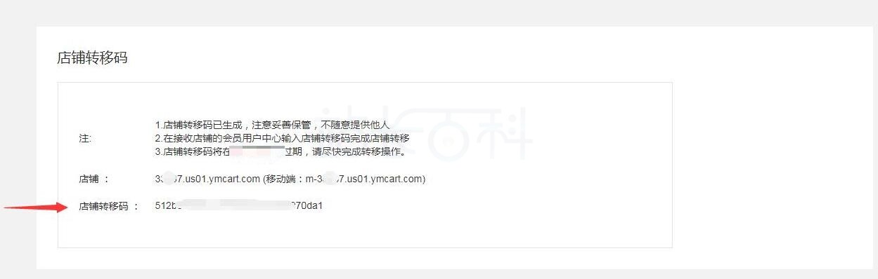 4、提交成功后,页面将会显示店铺转移码。